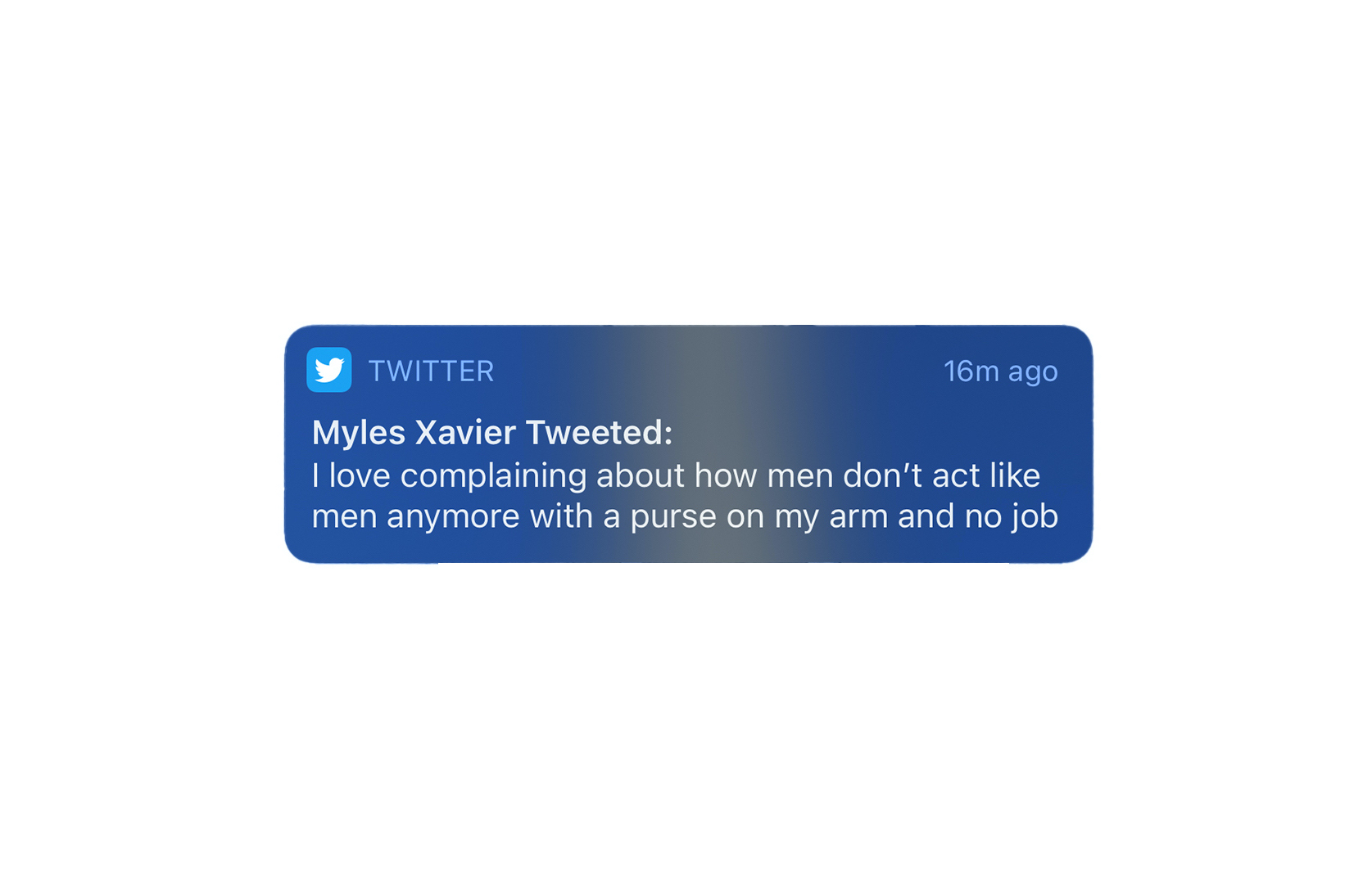 This tweeted and deleted sentiment by Myles Xavier.